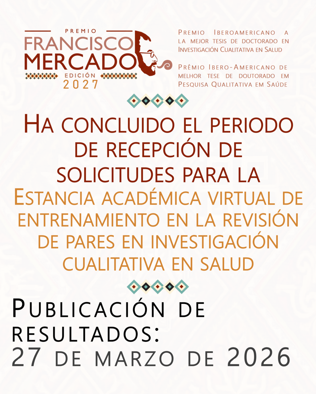 🔶 Anunciamos a apertura da convocatória correspondente à Edição 2027 do Prêmio Francisco Mercado.